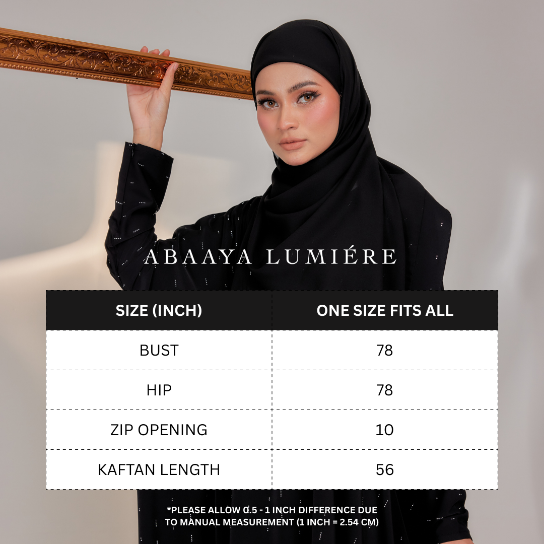 Comes with a beautiful design and comfortable material to ensure Lateefa Lady feels more comfortable. Made of premium nidha with fully scattered hand-applied rhinestone delicate diagonal lines , it will definitely make you feel breathable and comfortable for wearing. Let’s have basic the colours from Abaaya Lumiere collection now!.