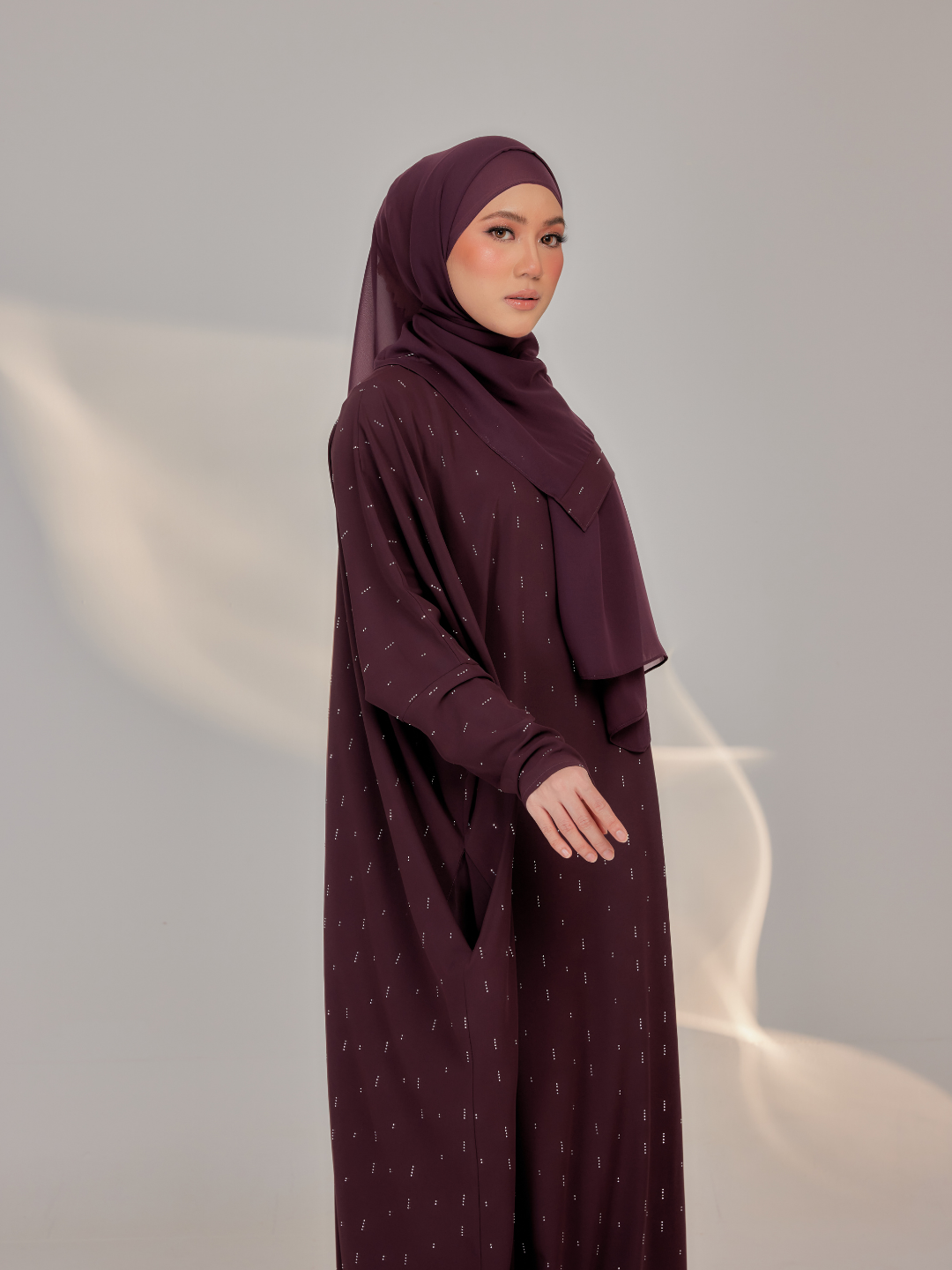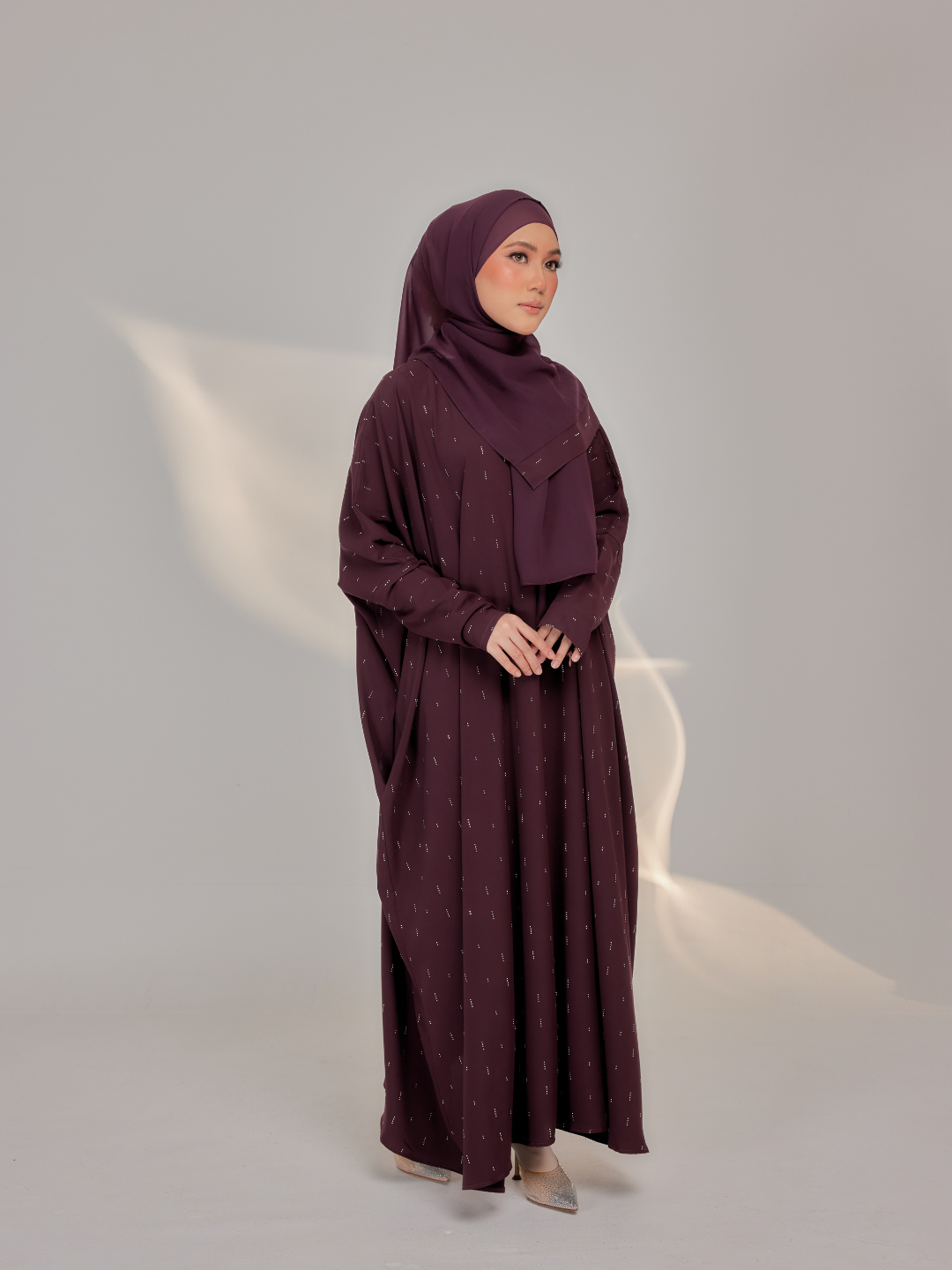 Comes with a beautiful design and comfortable material to ensure Lateefa Lady feels more comfortable. Made of premium nidha with fully scattered hand-applied rhinestone delicate diagonal lines , it will definitely make you feel breathable and comfortable for wearing. Let’s have basic the colours from Abaaya Lumiere collection now!.