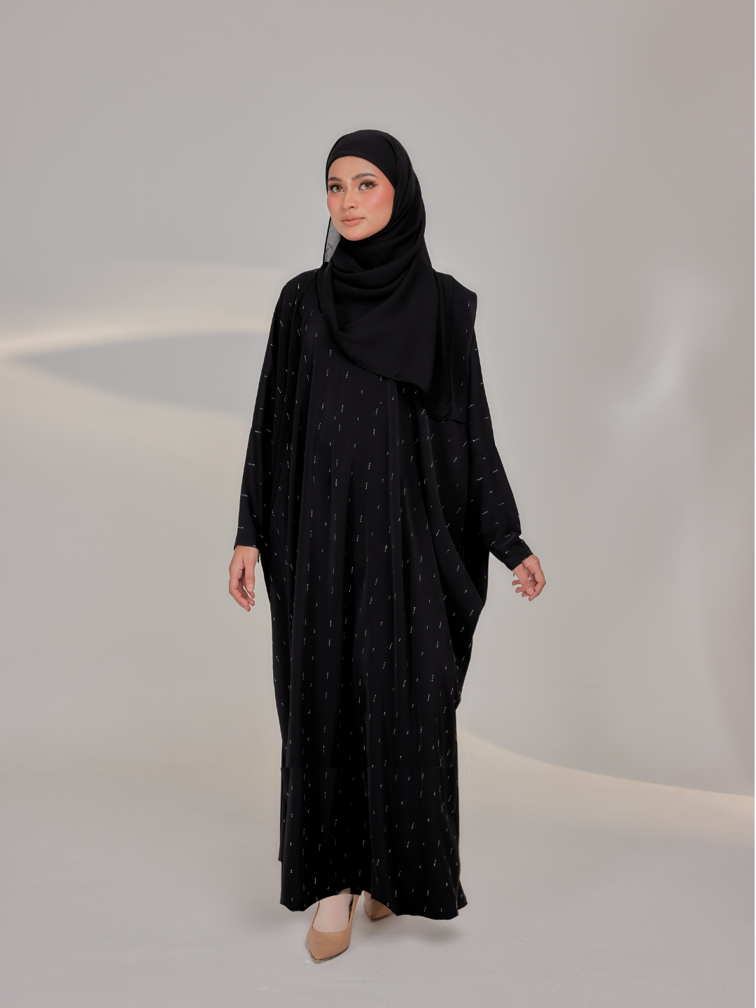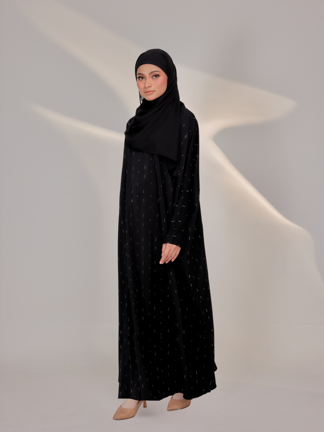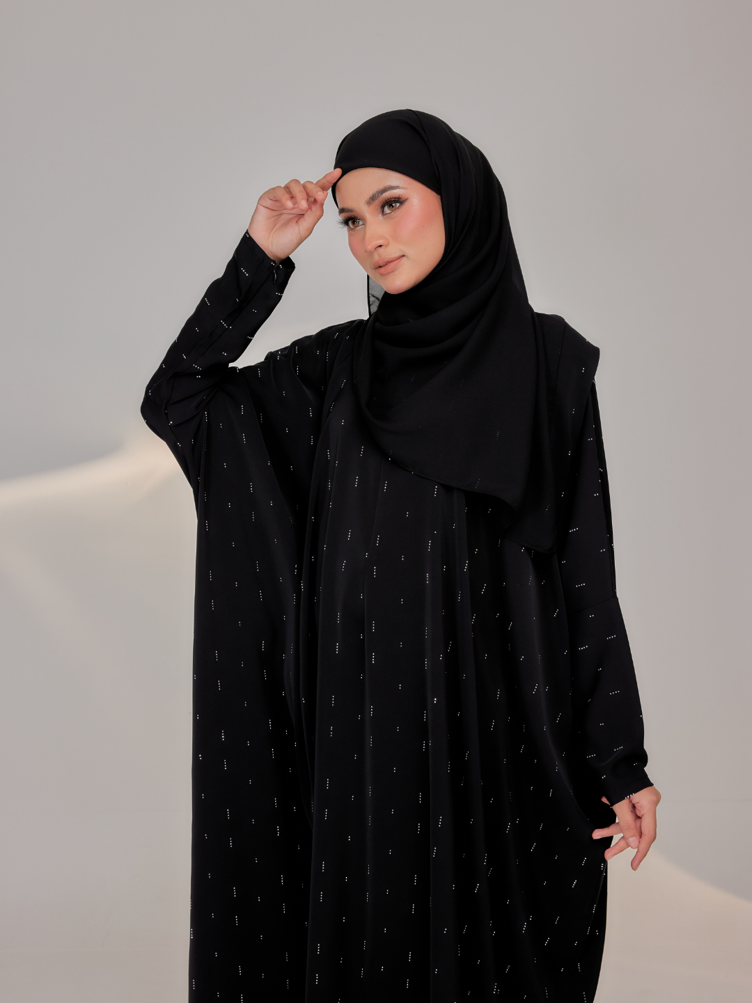 Comes with a beautiful design and comfortable material to ensure Lateefa Lady feels more comfortable. Made of premium nidha with fully scattered hand-applied rhinestone delicate diagonal lines , it will definitely make you feel breathable and comfortable for wearing. Let’s have basic the colours from Abaaya Lumiere collection now!.